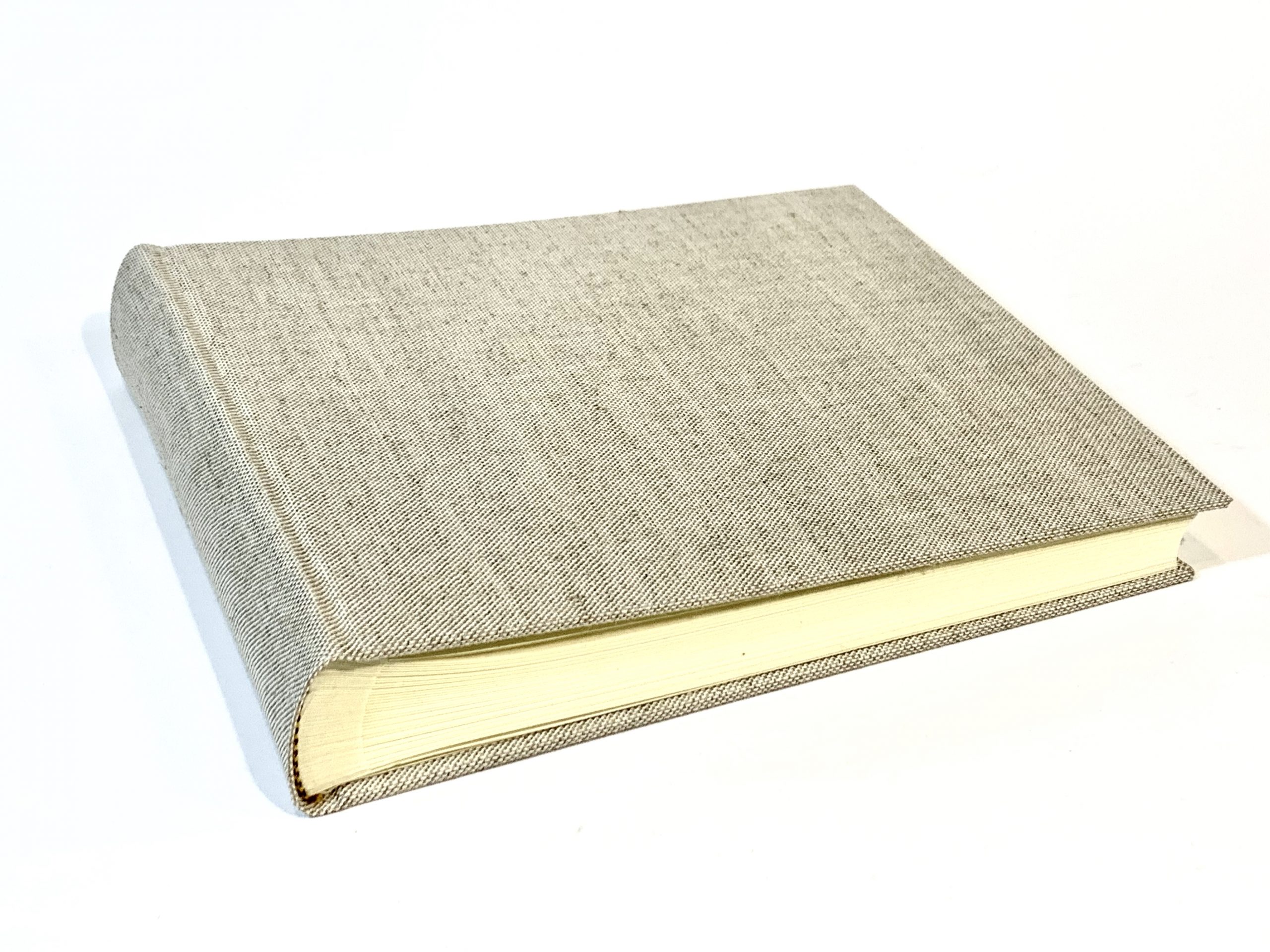 Álbum de fotos encuadernado con tela lino grueso color natural.