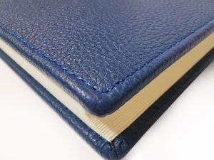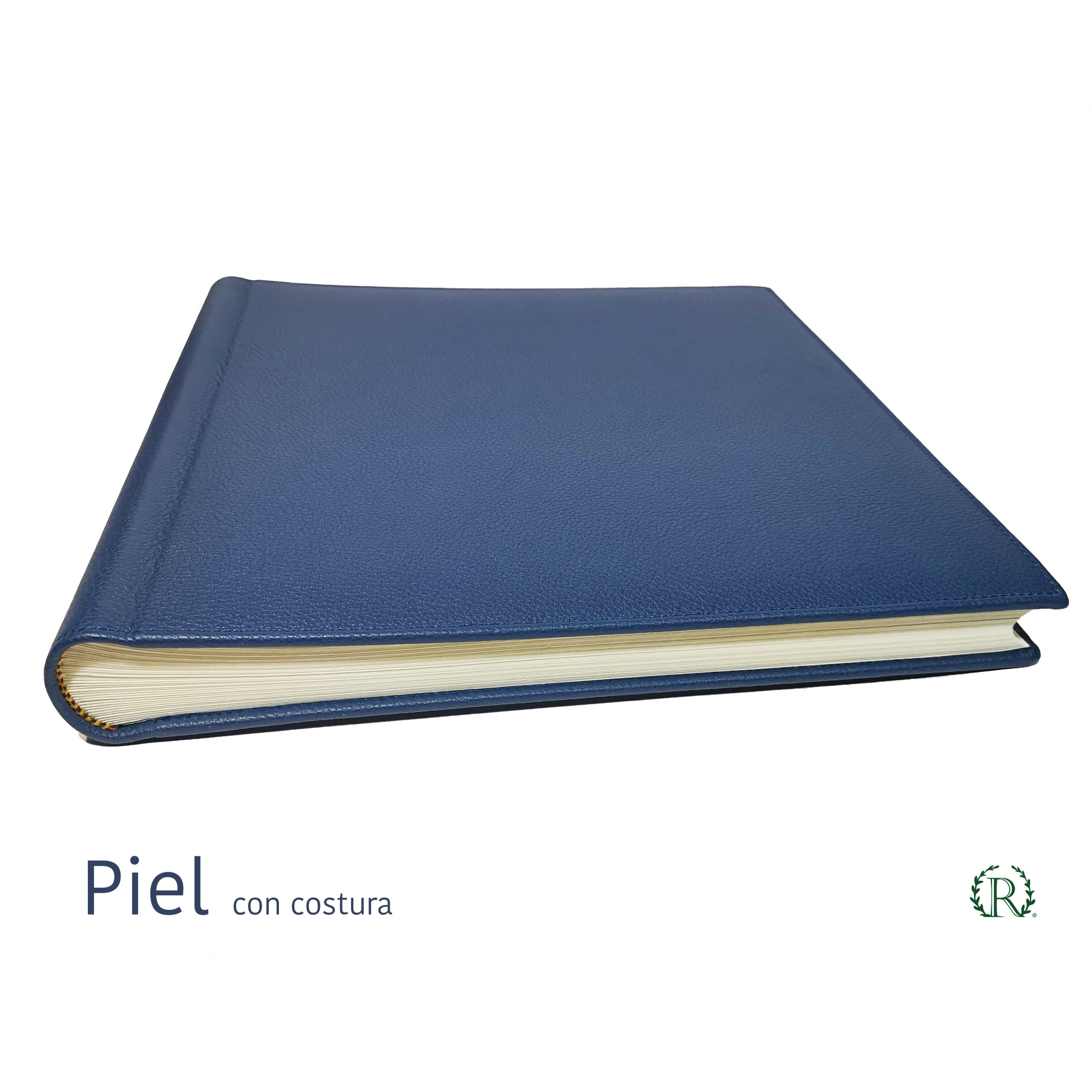 Material de cubierta: Piel de vacuno color azul. Terminación con costura.