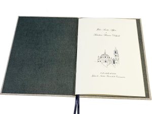 2. la estampación de la portada en autentico relieve con los nombres de los novios y la fecha,