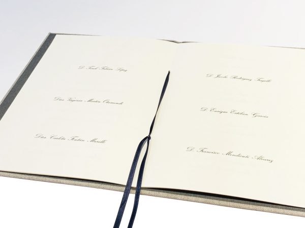 La carpeta de testigos conserva de manera imborrable la ilusión de compartir con las personas más queridas uno de los momentos más importantes de la vida. La firma de cada unos de los testigos a la ceremonia de unión en matrimonio permanecerá como un recuerdo para siempre.