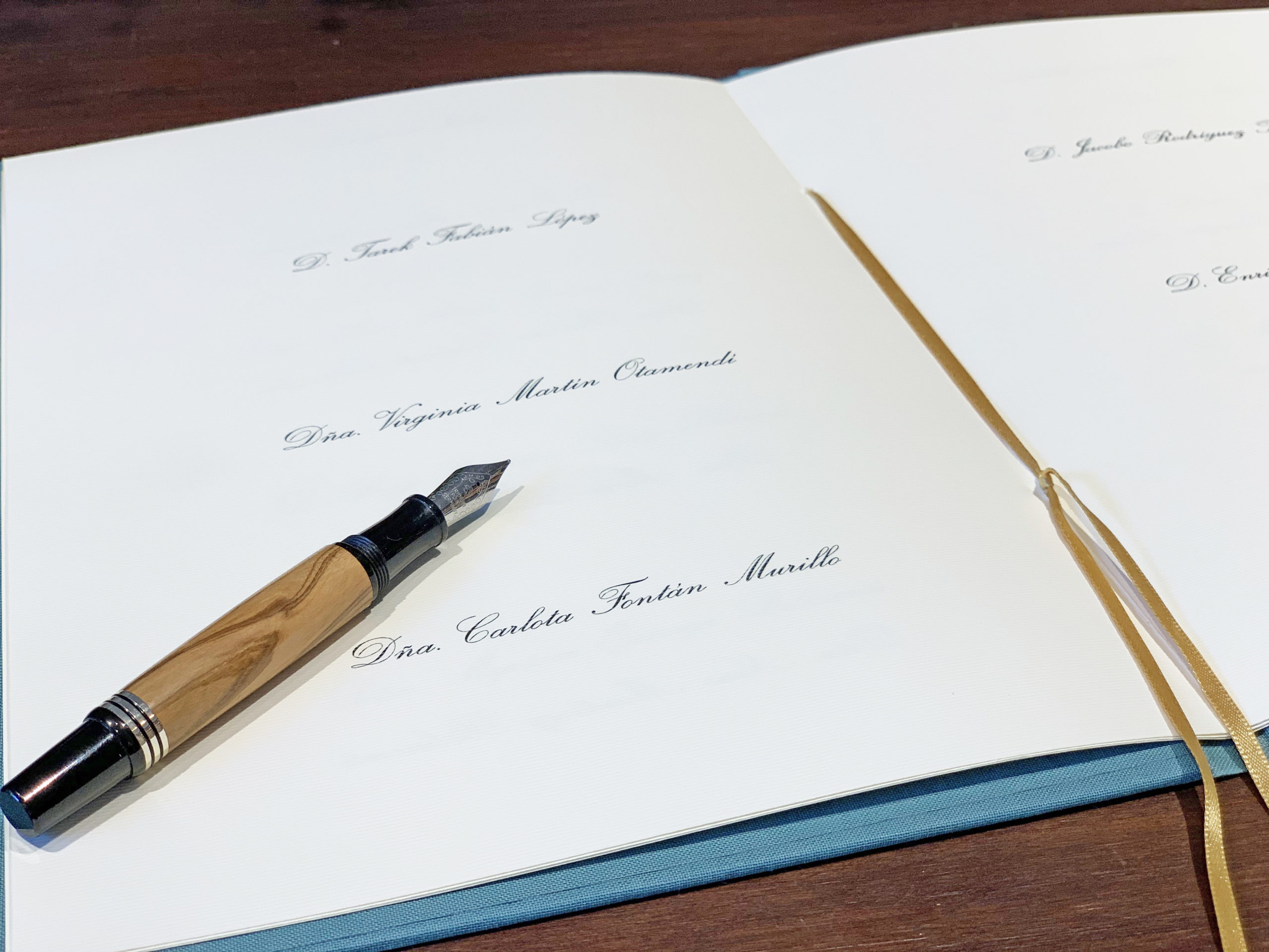 La carpeta de testigos conserva de manera imborrable la ilusión de compartir con las personas más queridas uno de los momentos más importantes de la vida. La firma de cada unos de los testigos a la ceremonia de unión en matrimonio permanecerá como un recuerdo para siempre.