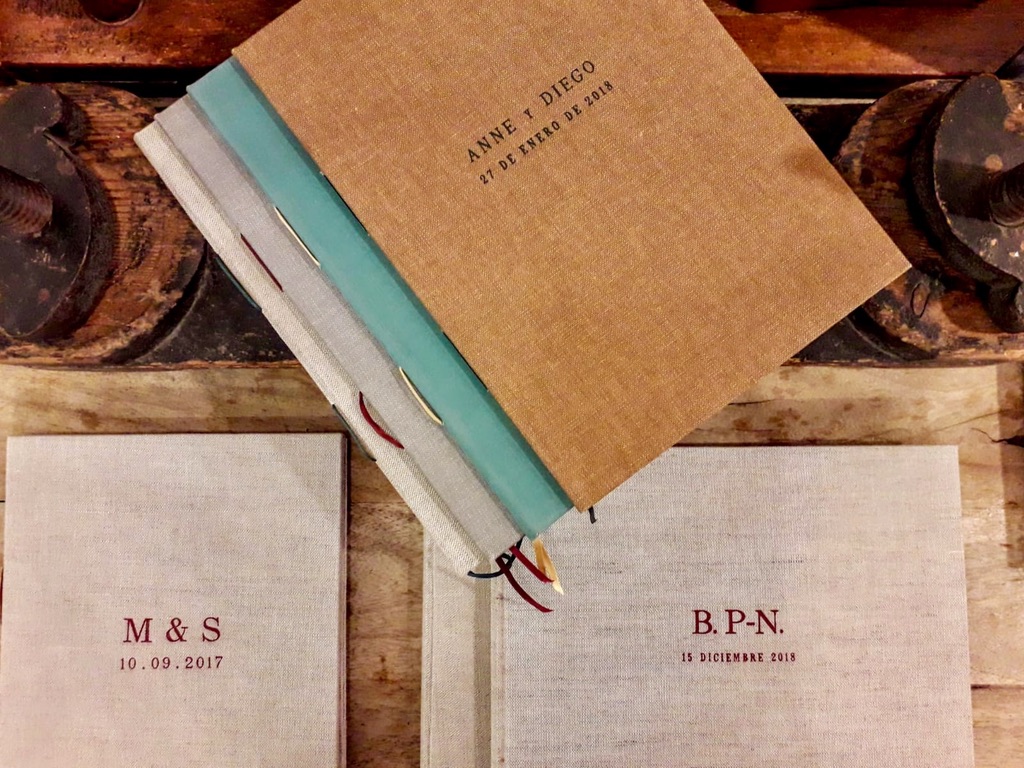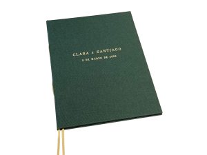 La portada se personaliza con los nombre de pila de los novios y la fecha. Color de estampación: beige.