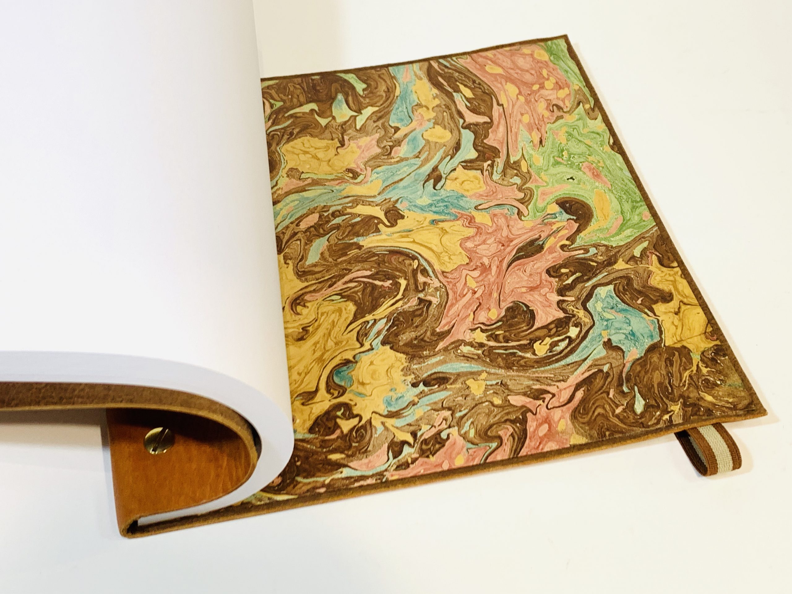 Para el interior de la contraportada utilizamos un papel marmoleado "tormenta" hecho a mano.